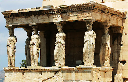 The Erechtheum at the Acropolis. These are replicas however to protect the originals from further erosion.